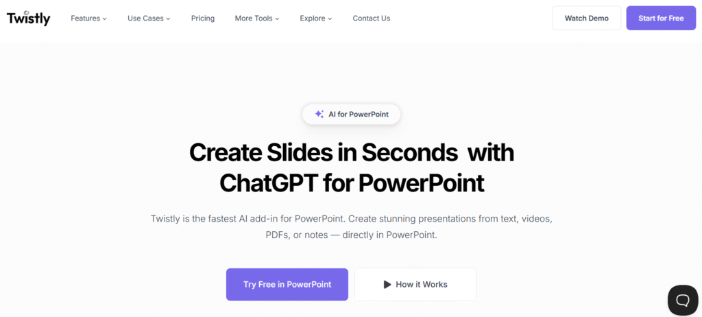 عند البحث عن أدوات الذكاء الاصطناعي لبرنامج PowerPoint، يظهر مصطلح “ChatGPT for PowerPoint” بشكل متكرر (التي تعمل تحت العلامة التجارية Twistly): وهي إضافة (Add-in) من طرف ثالث طورتها شركة APPS DO WONDERS LLC، وهي متاحة للتثبيت مباشرة من متجر إضافات Microsoft (AppSource). تمثل هذه الأداة نموذج “الحل المتخصص” (Point Solution)، حيث تركز على تقديم مجموعة غنية من الميزات بسعر منخفض، وتعمل بشكل مباشر داخل واجهة PowerPoint.
