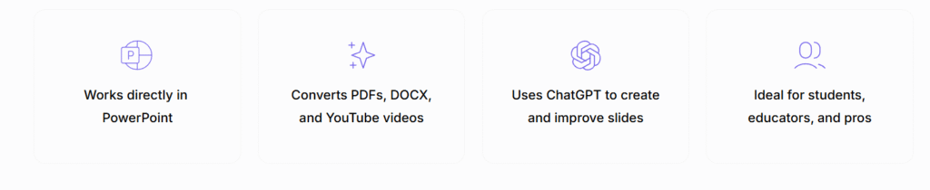 عند البحث عن أدوات الذكاء الاصطناعي لبرنامج PowerPoint، يظهر مصطلح “ChatGPT for PowerPoint” بشكل متكرر (التي تعمل تحت العلامة التجارية Twistly): وهي إضافة (Add-in) من طرف ثالث طورتها شركة APPS DO WONDERS LLC، وهي متاحة للتثبيت مباشرة من متجر إضافات Microsoft (AppSource). تمثل هذه الأداة نموذج “الحل المتخصص” (Point Solution)، حيث تركز على تقديم مجموعة غنية من الميزات بسعر منخفض، وتعمل بشكل مباشر داخل واجهة PowerPoint.