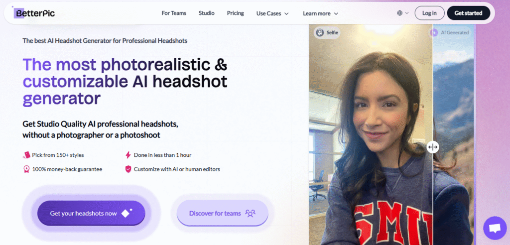 ◀︎ تُمثل أداة BetterPic منصة ذكاء اصطناعي متخصصة في إنشاء الصور الشخصية الاحترافية (Headshots) بجودة الاستوديو، دون الحاجة إلى جلسات تصوير تقليدية أو معدات تصوير مكلفة. تهدف الأداة إلى تمكين الأفراد ورواد الأعمال والفرق والشركات من الحصول على صور احترافية مناسبة للاستخدام في لينكدإن، المواقع الرسمية، السير الذاتية، والمواد التعريفية، خلال وقت قصير وبتكلفة أقل بكثير من التصوير التقليدي. تعتمد BetterPic على تقنيات متقدمة في معالجة الصور والتعلم العميق لتحليل ملامح الوجه، الإضاءة، الزوايا، والخلفيات، ثم توليد صور واقعية تبدو وكأنها التُقطت في استوديو احترافي.