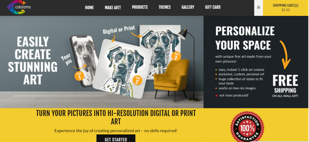 ◀︎ اختيار Coloromo يعني الاعتماد على أداة فن رقمي مبنية على الذكاء الاصطناعي تجمع بين سهولة الاستخدام، وتنوع الأساليب الفنية، وأعلى جودة في النتائج. تتيح المنصة لأي شخص، حتى بدون خبرة فنية، تحويل الصور العادية إلى أعمال فنية رائعة يمكن استخدامها في الديكور، أو المشاركة على وسائل التواصل الاجتماعي، أو كهدية شخصية، أو حتى للبيع في الأسواق الرقمية والمطبوعة.