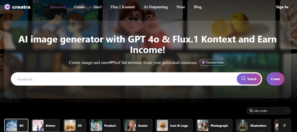 ◀︎ ما يميّز Creatra أيضًا هو تركيزها على إمكانية التصدير والاستعمال التجاري للصور، إضافة إلى النظام المجتمعي الذي يمكّن المصممين من اكتشاف أعمال الآخرين وشراء أو تعديل الأفكار جاهزة. هذه التركيبة بين التوليد، السوق، والملكية العملية تجعل Creatra خيارًا جذابًا لمن يريد إنتاج محتوى سريعًا وتحويله إلى مصدر دخل.