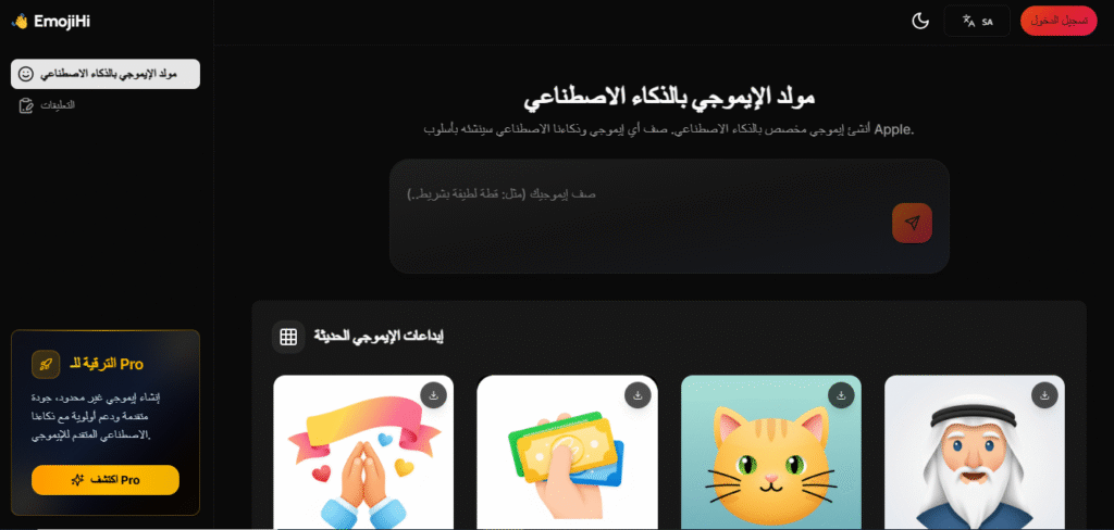 ◀︎ تُمثل أداة EmojiHi منصة ذكاء اصطناعي مبتكرة متخصصة في توليد إيموجي مخصص من وصف نصي بسيط يقدمه المستخدم، مما يجعله أداة فريدة لتعزيز التعبير الرقمي وإضفاء طابع شخصي على الرسائل والمحتوى الرقمي. تعتمد EmojiHi على تقنيات الذكاء الاصطناعي التوليدي ومعالجة اللغة الطبيعية لإنشاء رموز إيموجي أصلية بتصميم مشابه لأسلوب Apple الشهير، وهو الأسلوب المستخدم في أجهزة iPhone وiPad. كل ما عليك فعله هو وصف ما تريد رؤيته في الإيموجي — مثل “قطة ترتدي نظارات شمسية” أو “قلقلة ابتسامة مع نجم” — ومن ثم يقوم النظام بتحويل هذا الوصف مباشرة إلى صورة إيموجي فريدة وعالية الجودة.