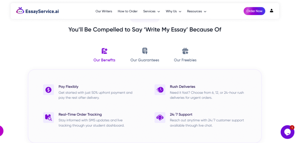 ◀︎ تُعد EssayService.ai منصة تعليمية وأكاديمية متكاملة مدعومة بالذكاء الاصطناعي، طُورت خصيصًا لمساعدة الطلاب والباحثين في إنجاز المهام الكتابية والأبحاث الجامعية والمقالات العلمية بشكل أسرع وأكثر احترافية. المنصة لا تقتصر على كونها مجرد أداة لتوليد النصوص، بل تمثل منظومة شاملة تضم تقنيات ذكية وخبرة بشرية، ما يجعلها خيارًا فريدًا للمتعلمين في مختلف المستويات الأكاديمية.