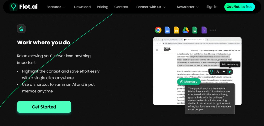 ◀︎ يقدّم Flot مستويات تحكّم في الذاكرة والبيانات (بما في ذلك إمكانيات إداراة “ذاكرة AI” وحذفها)، ويُسوّق نفسه كأداة متوافقة مع احتياجات الشركات والأفراد الذين يريدون حفظ مقاطع أو ملاحظات خاصة مع إمكانية استدعائها لاحقًا بطريقة آمنة. كما تتوفر إضافة Chrome وتطبيقات لسطح المكتب لتسهيل الاستخدام عبر النظام.