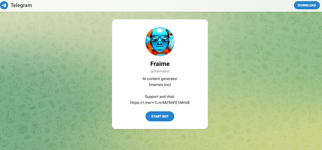 ◀︎ تُعد FraimeBot واحدة من أبرز الأدوات المبتكرة على منصة Telegram، حيث تُمثل دمجًا فريدًا بين تقنيات الذكاء الاصطناعي واحتياجات المستخدمين اليومية في إنشاء وتحرير المحتوى البصري. أُطلق Fraime ليكون رفيقًا رقميًا سلسًا داخل محادثات التليغرام، بحيث لا يحتاج المستخدم إلى تحميل تطبيقات منفصلة أو امتلاك خبرة تقنية في برامج تعديل الصور والفيديو.
