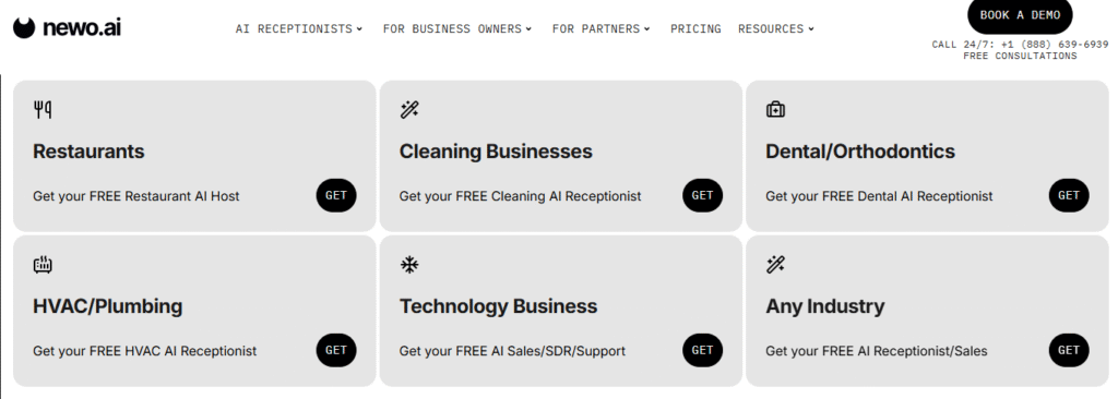 ◀︎ تُعد Newo.ai منصة متكاملة لإنشاء “موظفين افتراضيين” بالذكاء الاصطناعي — مثل موظف استقبال ذكي (AI Receptionist) أو ممثل مبيعات صوتي/نصيّ — يمكن نشره للعمل عبر الهاتف، الدردشة، الرسائل النصية، ومنصات التواصل خلال دقائق دون حاجة إلى تطوير معقد. تروّج Newo بأنها تتيح إنشاء وكيل/موظف ذكي في 3 دقائق باستخدام مُنشئها المرئي و”سحر المتصفح” الخاص بها الذي يجمع معلومات العمل (مثل بيانات Google Maps وصفحة الويب) لتدريب الوكيل تلقائيًا.