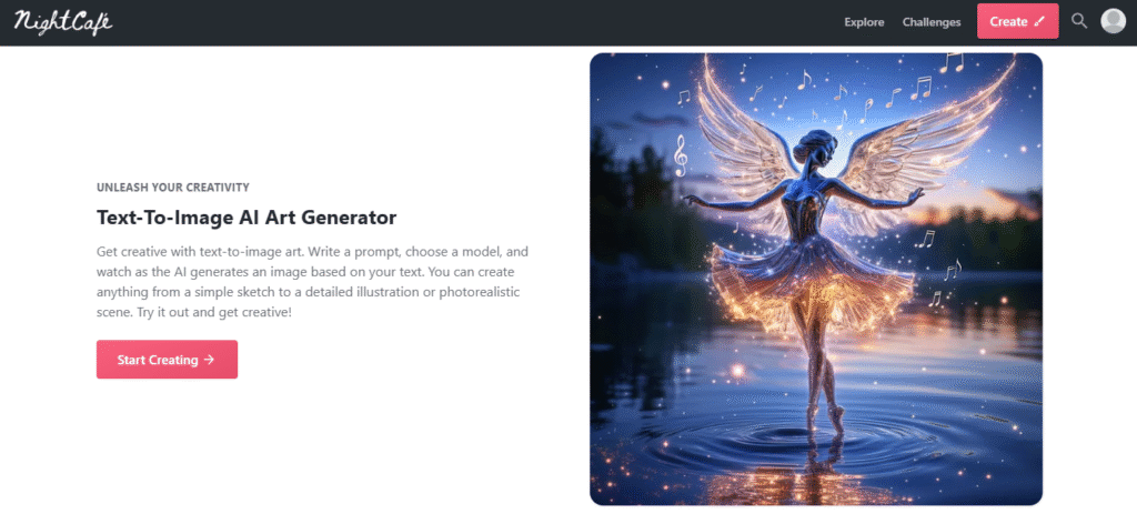◀︎ تُعد NightCafe Creator (المتوفرة عبر Creator.NightCafe.Studio) منصة متقدمة لتوليد الصور الفنية باستخدام تقنيات الذكاء الاصطناعي التوليدي، وهي جزء من عائلة منتجات NightCafe المعروفة في مجتمع فنون الذكاء الاصطناعي. صُممت الأداة لتُمكّن الفنانين، المصممين، صُنّاع المحتوى، والمسوقين من تحويل أفكار نصية بسيطة أو صور مرجعية إلى أعمال فنية عالية الجودة بأنماط فنية متنوعة — بدءًا من الرسم الزيتي والكلاسيكي إلى الأساليب الرقمية والسينمائية والخيالية. تمثل NightCafe Creator مزيجًا بين سهولة الاستخدام وقابليات تخصيص متقدمة، ما يجعلها مناسبة للمبتدئين ومثمرة للمحترفين الباحثين عن توليد إبداعات بصرية فريدة.