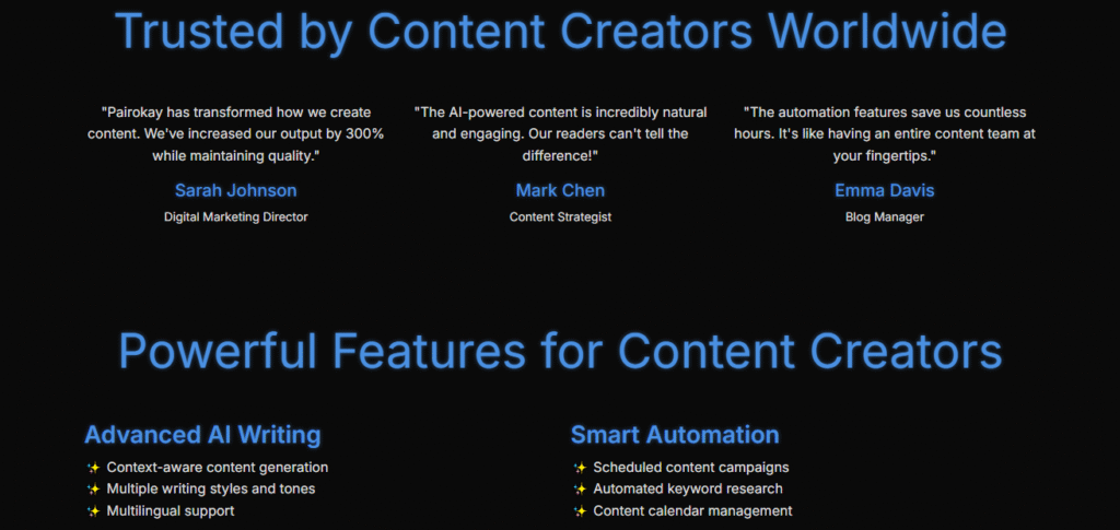 ◀︎ تهدف PairOkay إلى إحداث “ثورة في صناعة المحتوى”. إن تركيزها على الأتمتة الشاملة وإدارة الحملات يضعها في شريحة متقدمة من السوق، حيث لا تخدم فقط المستخدم الذي يحتاج إلى مقال واحد، بل تستهدف الاستراتيجيين والفرق التي تسعى إلى بناء نظام متكامل لعمليات المحتوى. إنها تقدم نفسها على أنها “فريق محتوى كامل في متناول يدك”، مما يؤطرها كأداة تشغيلية شاملة مصممة لمعالجة الاهتمامات التشغيلية والمالية لمديري التسويق والمحتوى.