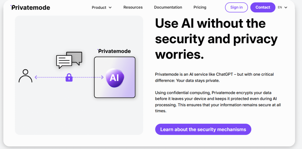 ◀︎ تُمثل Privatemode خدمة ذكاء اصطناعي سرية ومشفّرة بالكامل، صممت لاستخدام نماذج الذكاء الاصطناعي الحديثة دون المساس بخصوصية البيانات الحسّاسة. بخلاف العديد من خدمات الذكاء الاصطناعي السحابية التقليدية، التي قد تتعامل مع بياناتك بصورة يمكن أن تسمح للتقنيات أو مزودي الخدمة بالوصول إلى محتواها.