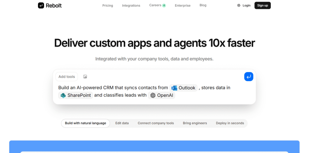 ◀︎ تُمثل أداة Rebolt أحدث منصة تتيح لأي شخص داخل الشركة بناء تطبيقات ووكلاء ذكاء اصطناعي من خلال التحدث إليهم فقط. أُطلقت هذه المنصة في عام 2025 وتقدم تجربة فريدة من نوعها، حيث تصفها الشركة بأنها “تسمح للجميع ببناء التطبيقات والوكيل الذكي بواسطة الأوامر الصوتية — وشاملة بكل ما تحتاجه (batteries included)” ترتكز Rebolt على مهمة تسهيل التحول الرقمي داخل المؤسسات عبر تبسيط الأكواد، وحجب تعقيدات التكامل مع الأنظمة الداخلية.