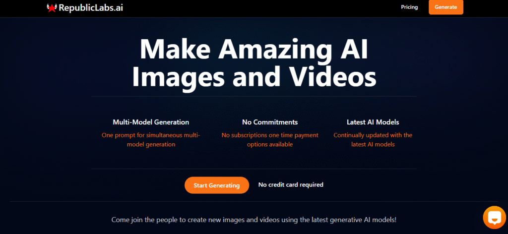 ◀︎ تُعدّ RepublicLabs.ai منصة مبتكرة لتوليد المحتوى الإبداعي باستخدام الذكاء الاصطناعي، تركز على الصور والفيديو بفضل دعمها لنماذج متعددة في آنٍ واحد. من موقعها الرسمي، توفّر المنصة إمكانية إرسال “موجه نصي” (prompt) واحد فقط، ولكن تشغيل هذا الموجه عبر عدة نماذج توليد في الوقت نفسه، مما يمنح المستخدم مرونة كبيرة لاختيار النتيجة الأكثر ملائمة لطابعه أو ما يريده من أسلوب بصري.