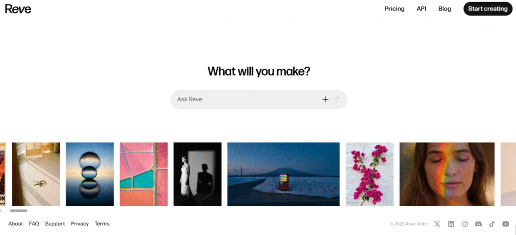◀︎ Reve هي منصة متقدمة لتوليد الصور والفيديو بالذكاء الاصطناعي تُركّز على تجربة إبداعية مرنة وسهلة للمستخدمين — تتيح تحويل الأوصاف النصية (prompts) إلى صور عالية الجودة، بالإضافة إلى أدوات تحرير (مثل تحرير شبيه بالفوتوشوب عبر أوامر نصية) وإمكانيات إنتاج فيديو صامت عالي الجودة. الواجهة متاحة عبر الويب (app.reve.com) ويعمل النظام بمزيج من نماذج داخلية مدرّبة خصيصًا للمهام الإبداعية.