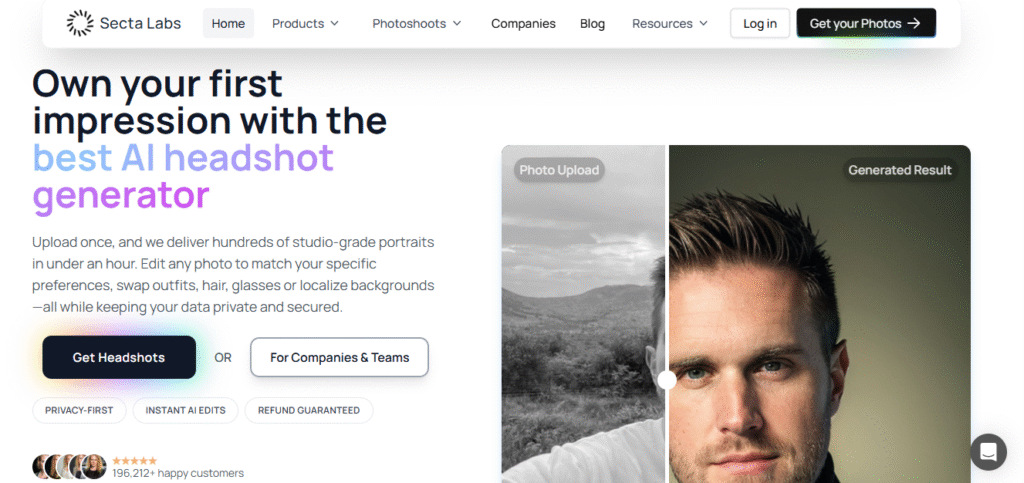 ◀︎ تُعد Secta AI منصة ذكاء اصطناعي متخصصة في تحويل الصور الشخصية أو “سيلفيز” عادية إلى صور احترافية — مثل صور “هدشوت” (headshot) أو بورتريه شخصي عالي الجودة يناسب الاستخدام المهني، الشبكات الاجتماعية، السيرة الذاتية، أو العلامة الشخصية (branding). بدل ما تحتاج جلسة تصوير فوتوغرافي احترافية، يمكنك ببساطة رفع مجموعة من صورك إلى Secta، وهي تقوم بمعالجة الصور بواسطة خوارزميات ذكاء اصطناعي لإنتاج صور بجودة احترافية — تعديل الخلفية، الإضاءة، الملابس، تعابير الوجه، وغيرها من التفاصيل — لتبدو وكأنها ملتقطة في استوديو محترف.