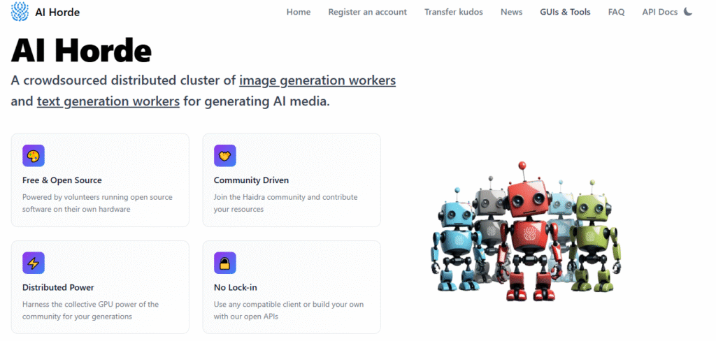 ◀︎ إضافة إلى ذلك، تتيح Stable Horde للمطورين والمبدعين وصناع المحتوى إمكانية بناء خدماتهم الخاصة فوق الشبكة، مما يجعلها ليس مجرد أداة توليد صور، بل بنية تحتية AI لامركزية يمكن استخدامها في التطبيقات، الألعاب، مشاريع التصميم، وأنظمة الأتمتة. هذا يجعل Stable Horde خيارًا مثاليًا للشركات الناشئة، والطلاب، والمطورين الذين يبحثون عن حل مجاني ومرن.تُقدم Stable Horde نموذجًا مختلفًا قائمًا على الحرية والمجتمع والانفتاح. هذا الفلسفة جعلتها واحدة من أبرز المشاريع التي تحتضن الذكاء الاصطناعي المفتوح، وتوفره للجميع دون قيود أو رسوم.