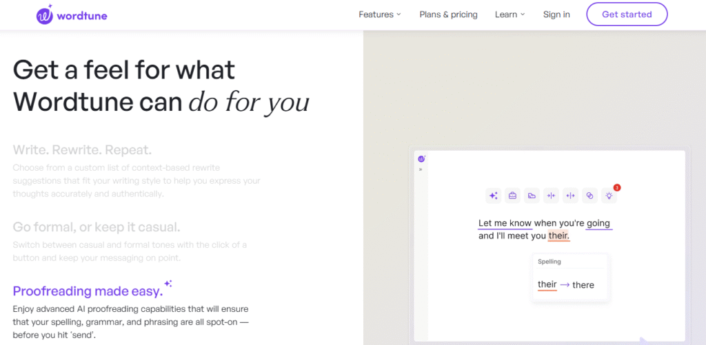 ◀︎ إن هذا التركيز على إعادة الصياغة والطلاقة والنبرة والأسلوب بدلاً من مجرد اكتشاف الأخطاء ليس صدفة، بل هو استراتيجية تموضع متعمدة في السوق. لا تحاول WordTune أن تكون نسخة أخرى من Grammarly؛ بل إنها تخلق لنفسها مكانة متخصصة كأداة لتحسين جودة وأسلوب الكتابة السليمة بالفعل من الناحية الهيكلية. هذا يعني أنه لا ينبغي للمستخدم أن ينظر إلى WordTune كمدقق لغوي أساسي، بل كـ “أداة تشطيب” أو “محسن أسلوبي”. هذا الفهم ضروري لإدارة التوقعات واستخدام الأداة بفعالية، فهي مصممة لجعل الكتابة الجيدة رائعة، وليس لجعل الكتابة السيئة صحيحة.